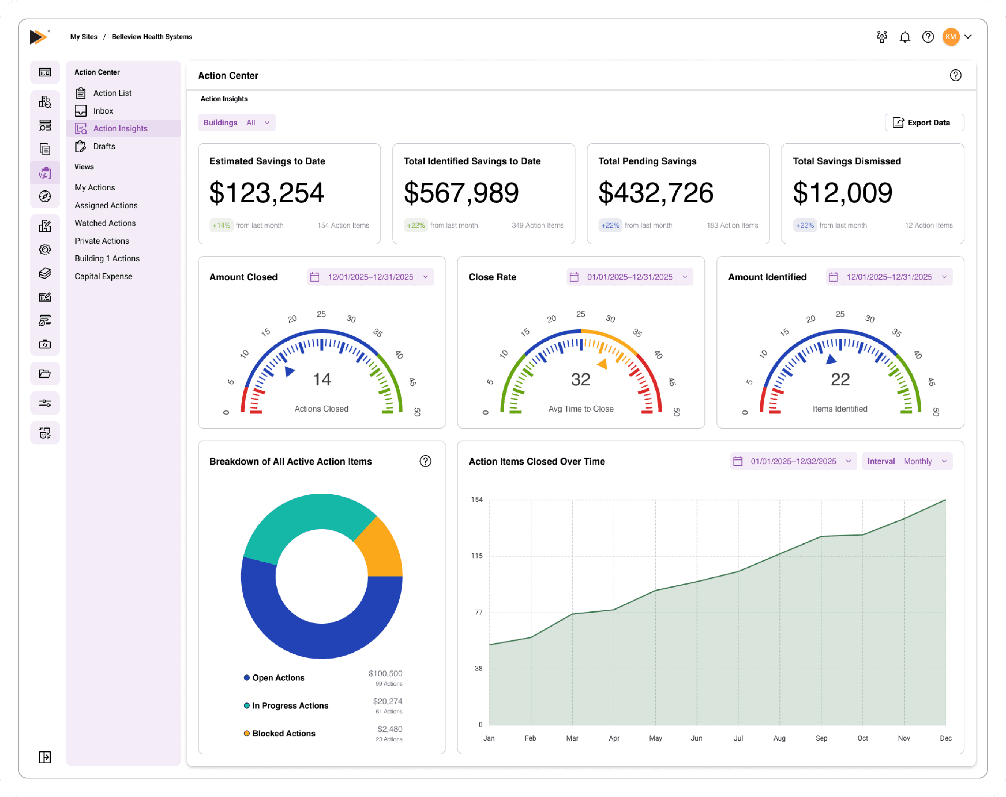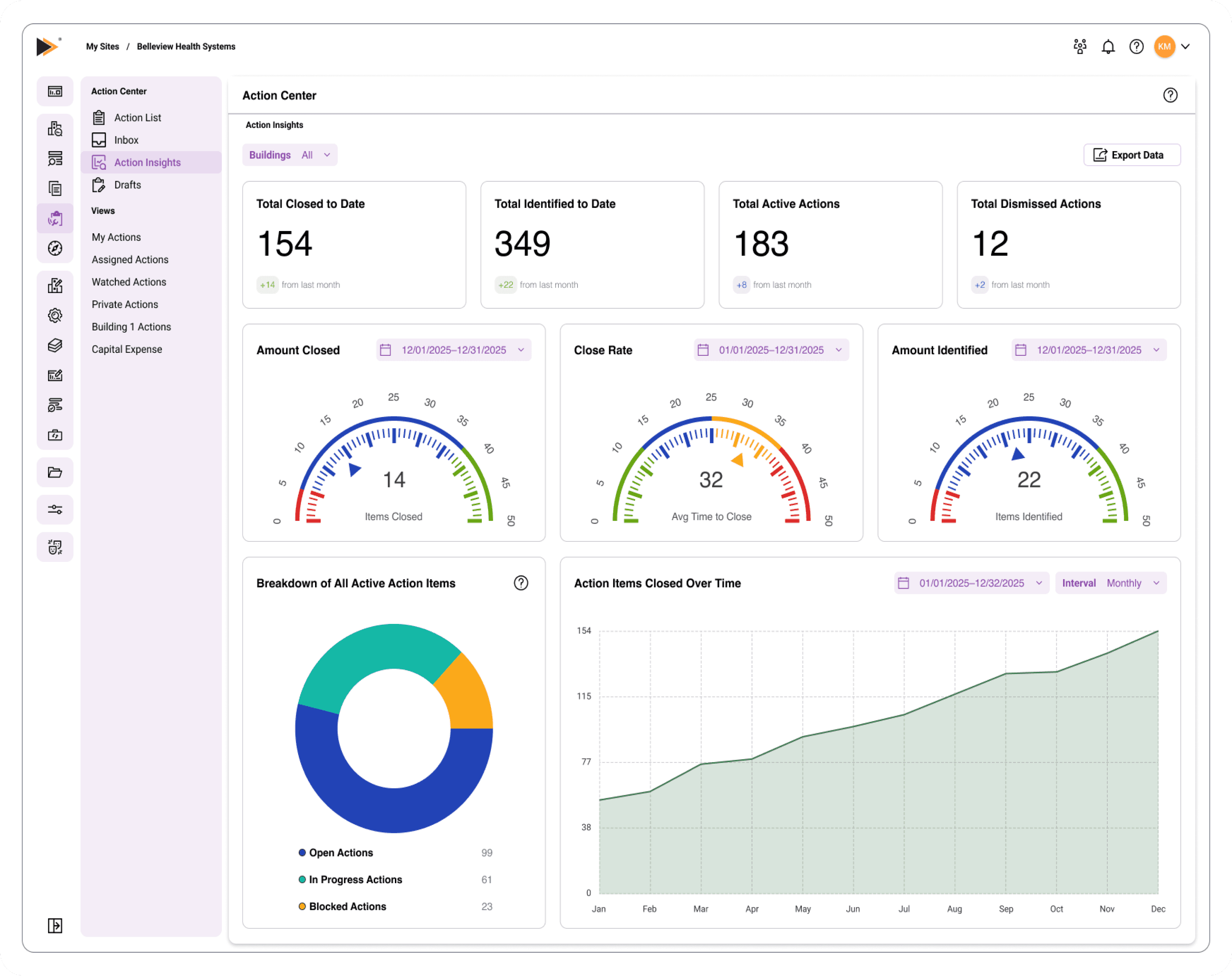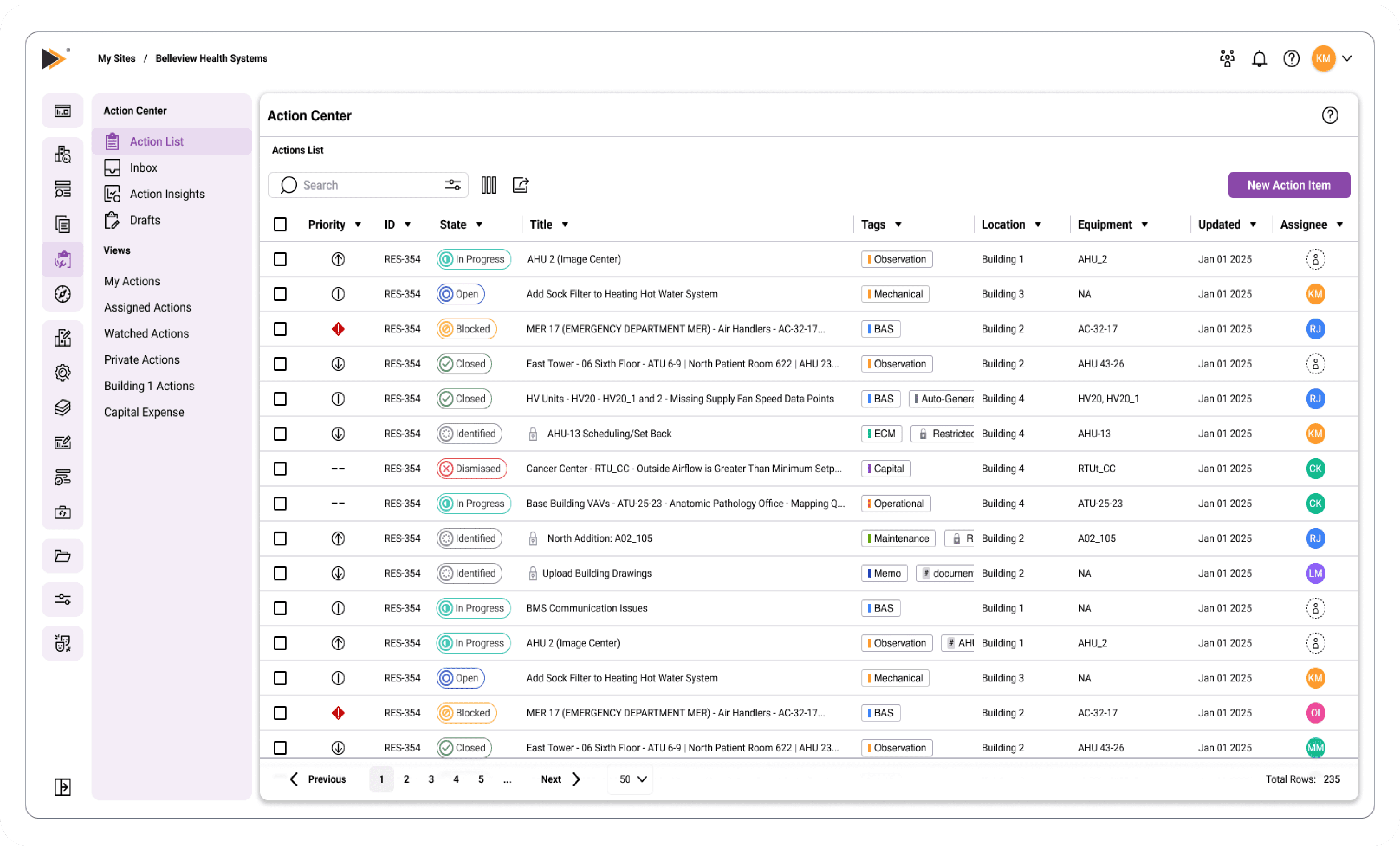 Introduced a centralized Action Items view as the default experience, allowing users to track and manage tasks across all buildings in one place.