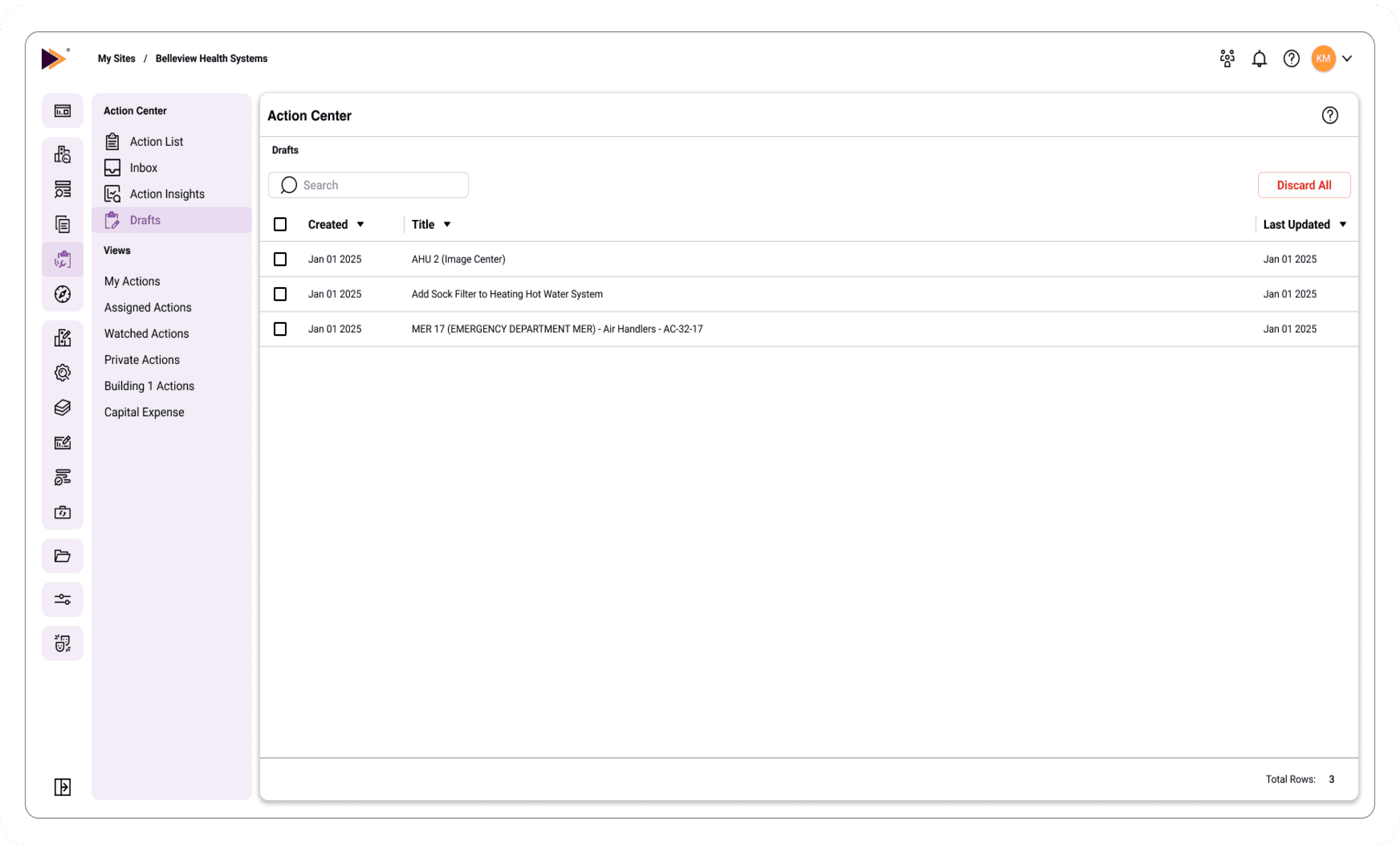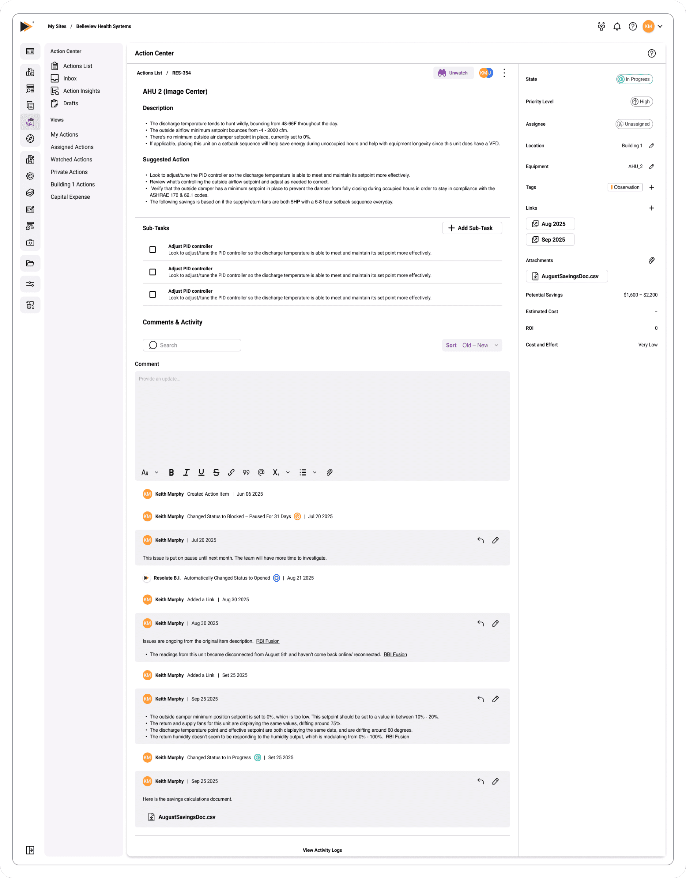 Action Center is a task management feature designed to help facilities teams track, prioritize, and resolve those issues. It started as a simple task tool but gradually expanded into a central communication hub. As new functionality was added over time, updates were made where they could fit rather than as part of a cohesive plan. This led to fragmented workflows, inconsistencies across the experience, and an overall decline in usability.
