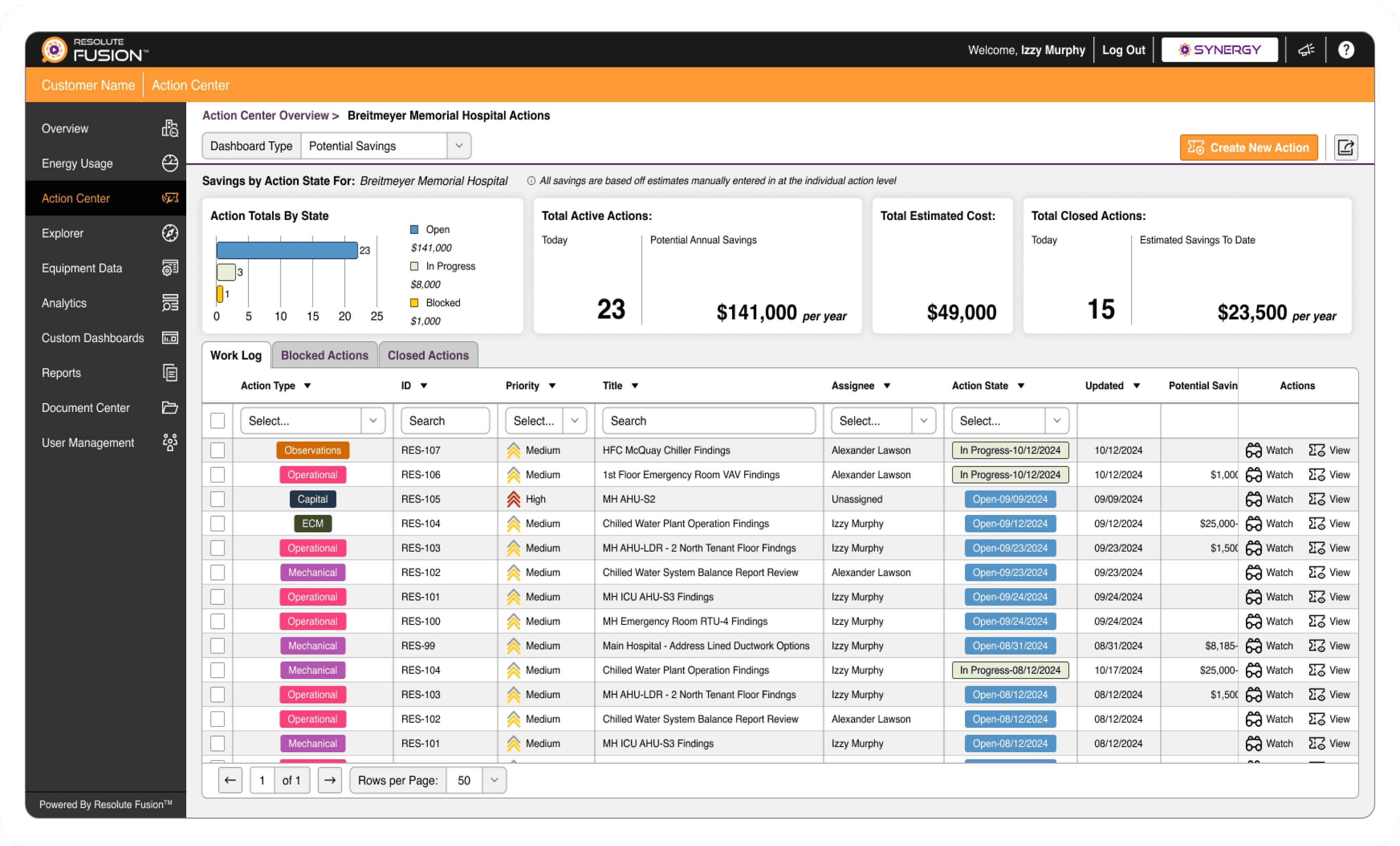 Expand the concept of Action Items beyond the building level to support portfolio-level visibility and management