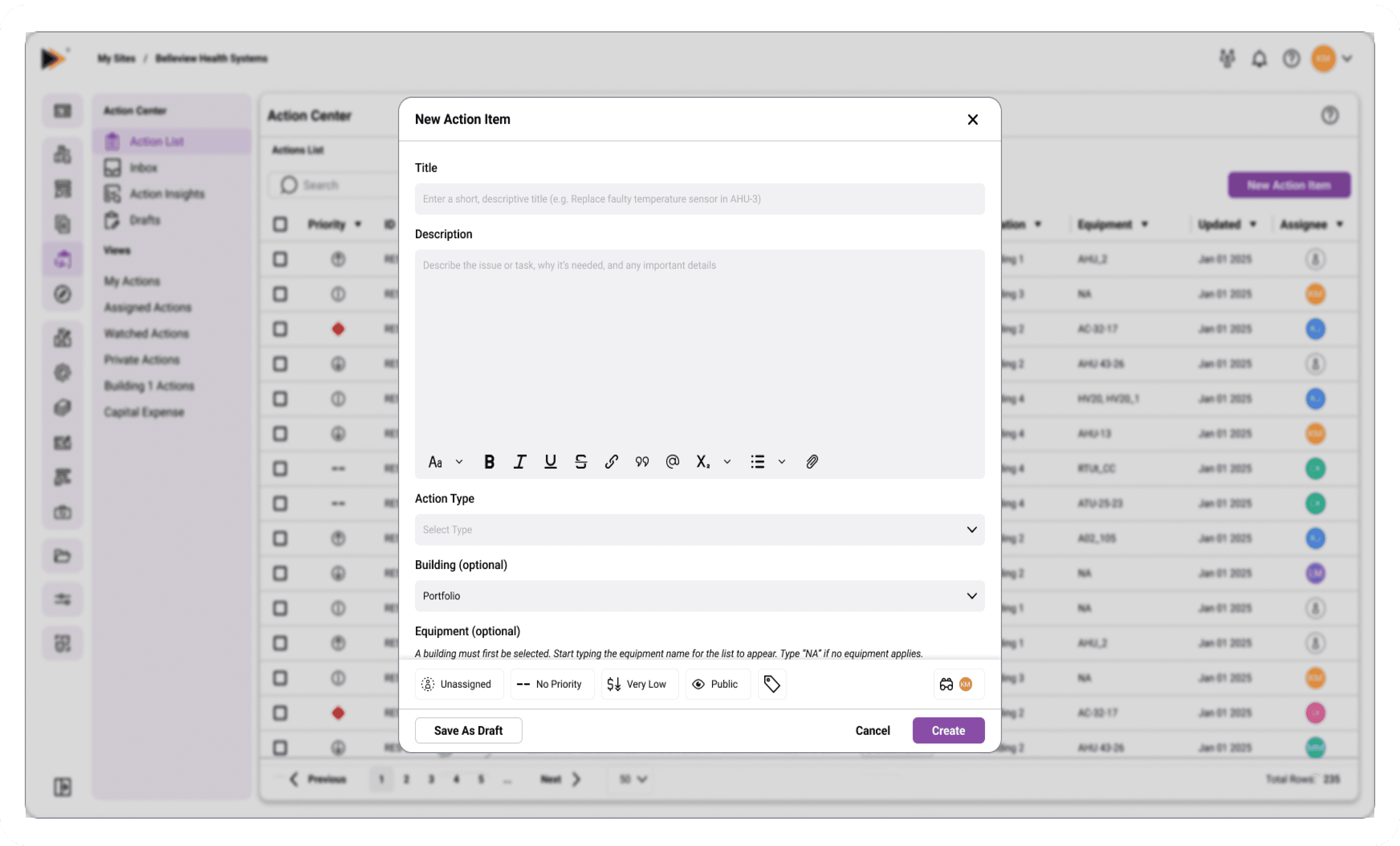 Introduced draft states and auto-save functionality to preserve progress during Action Item creation.