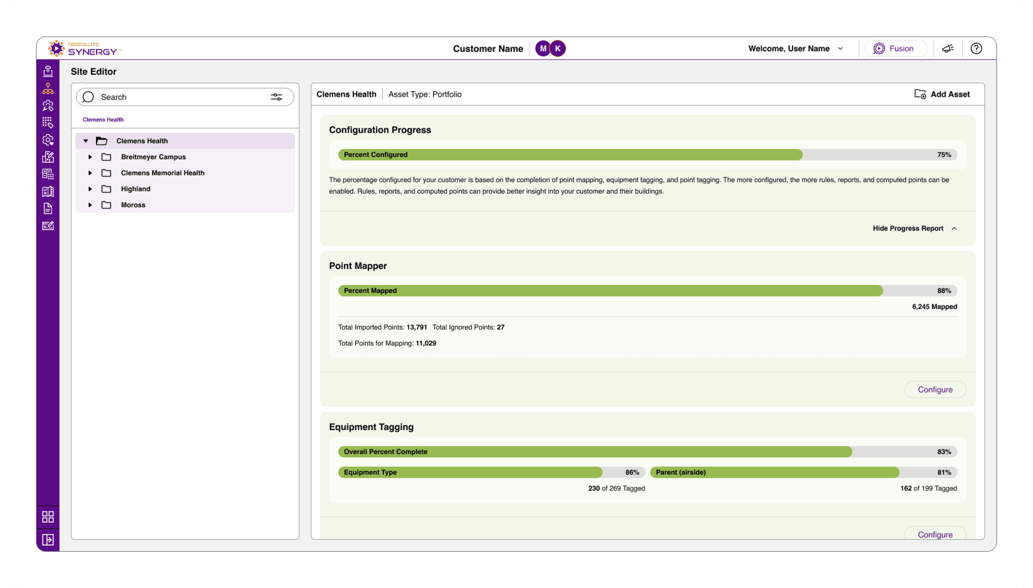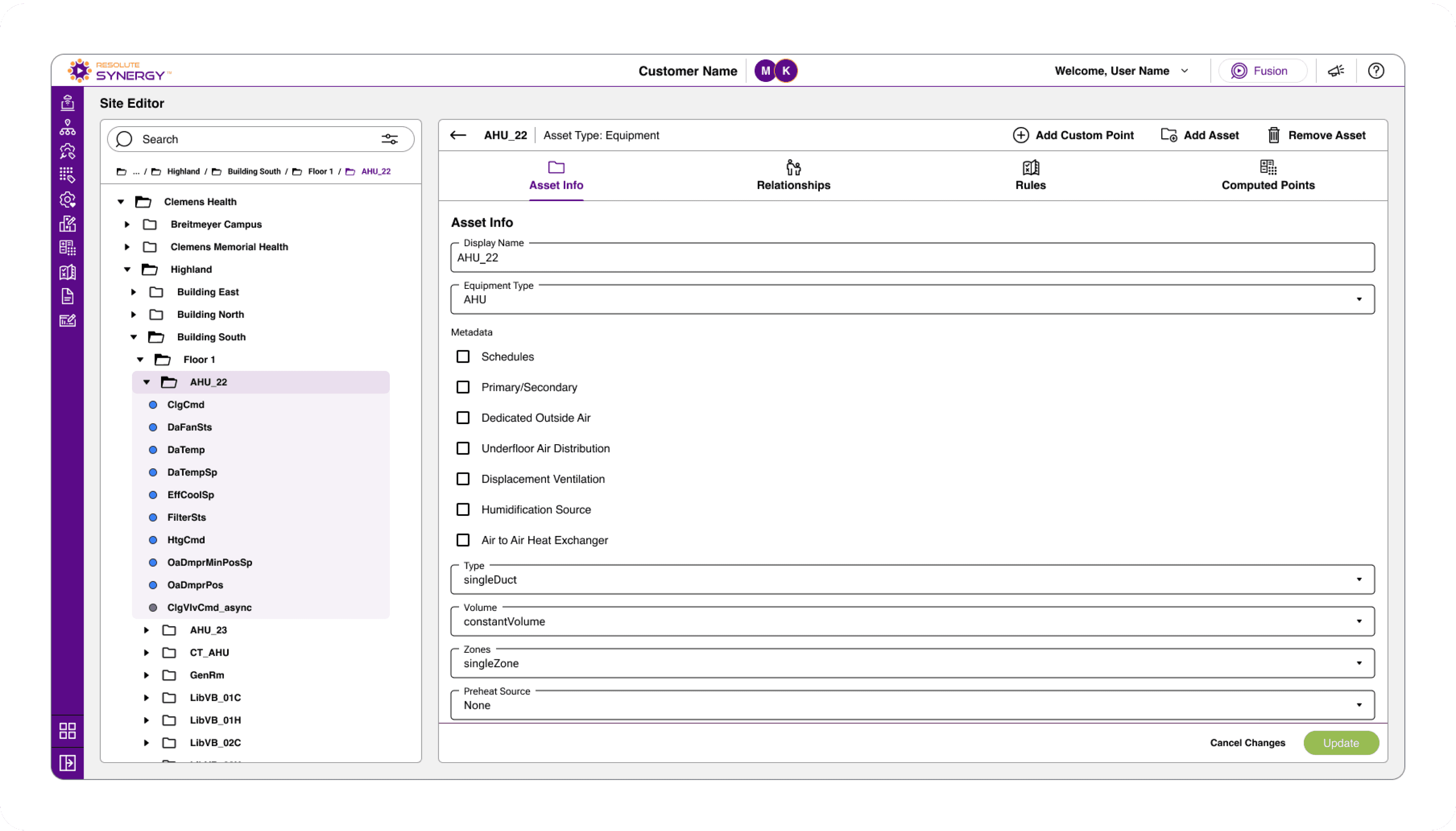 While mapping and tagging workflows are designed for speed and bulk configuration, the Site Editor provides a more granular way to navigate and manage building data.