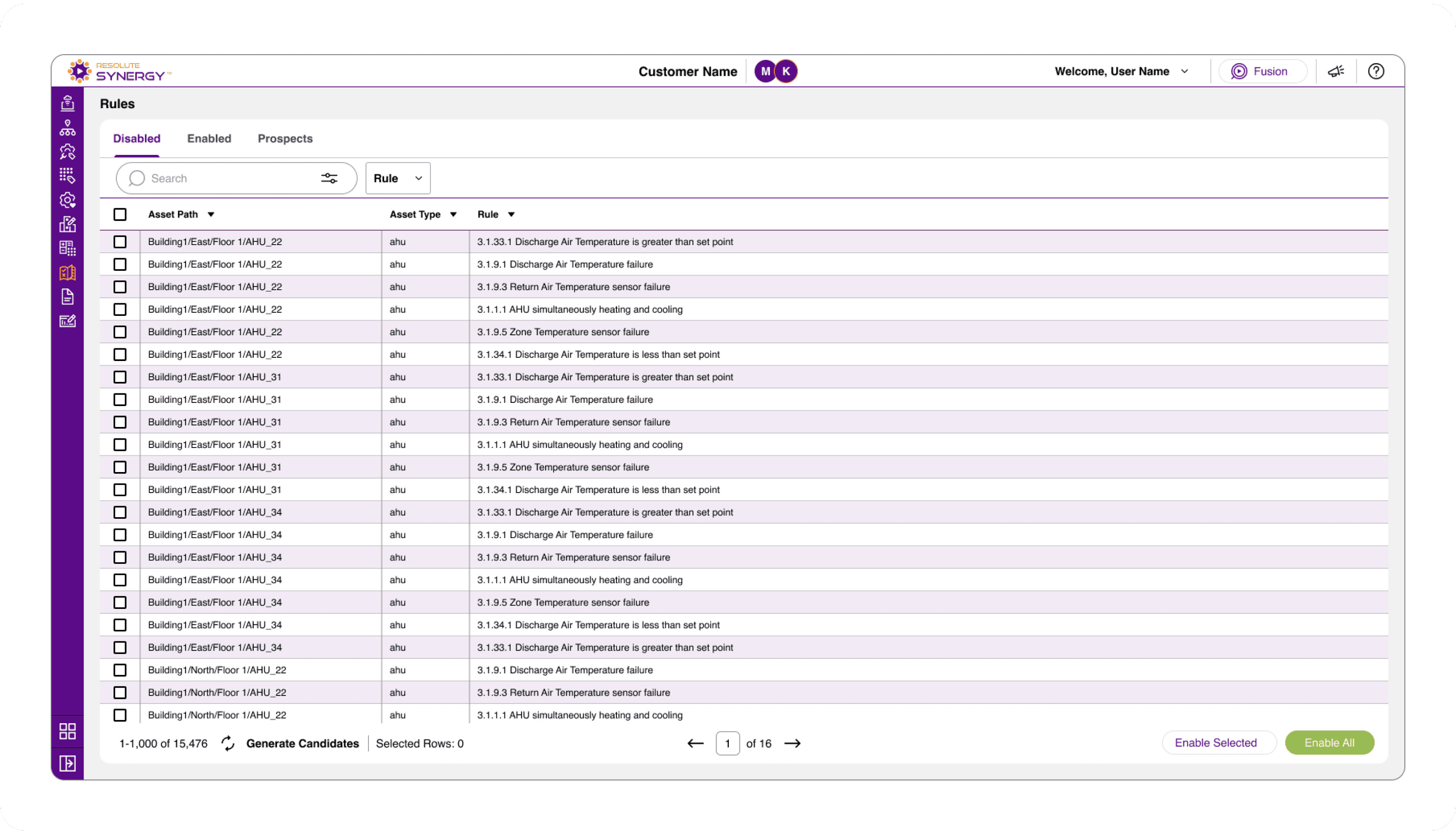 Users can quickly apply predefined rules rather than building them from scratch. Rule parameters can be adjusted and applied in bulk, allowing for both speed and flexibility.