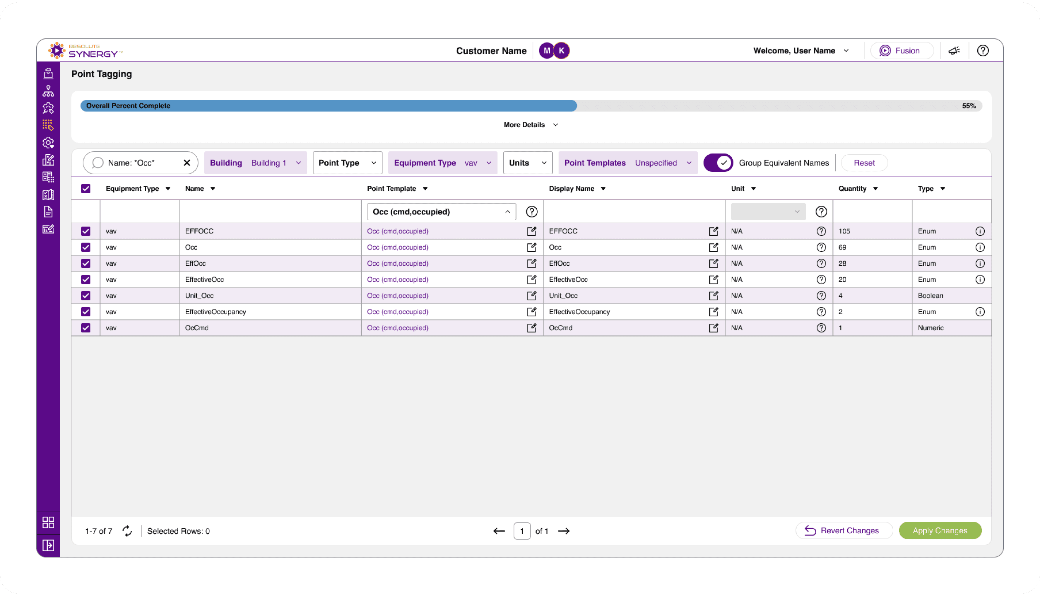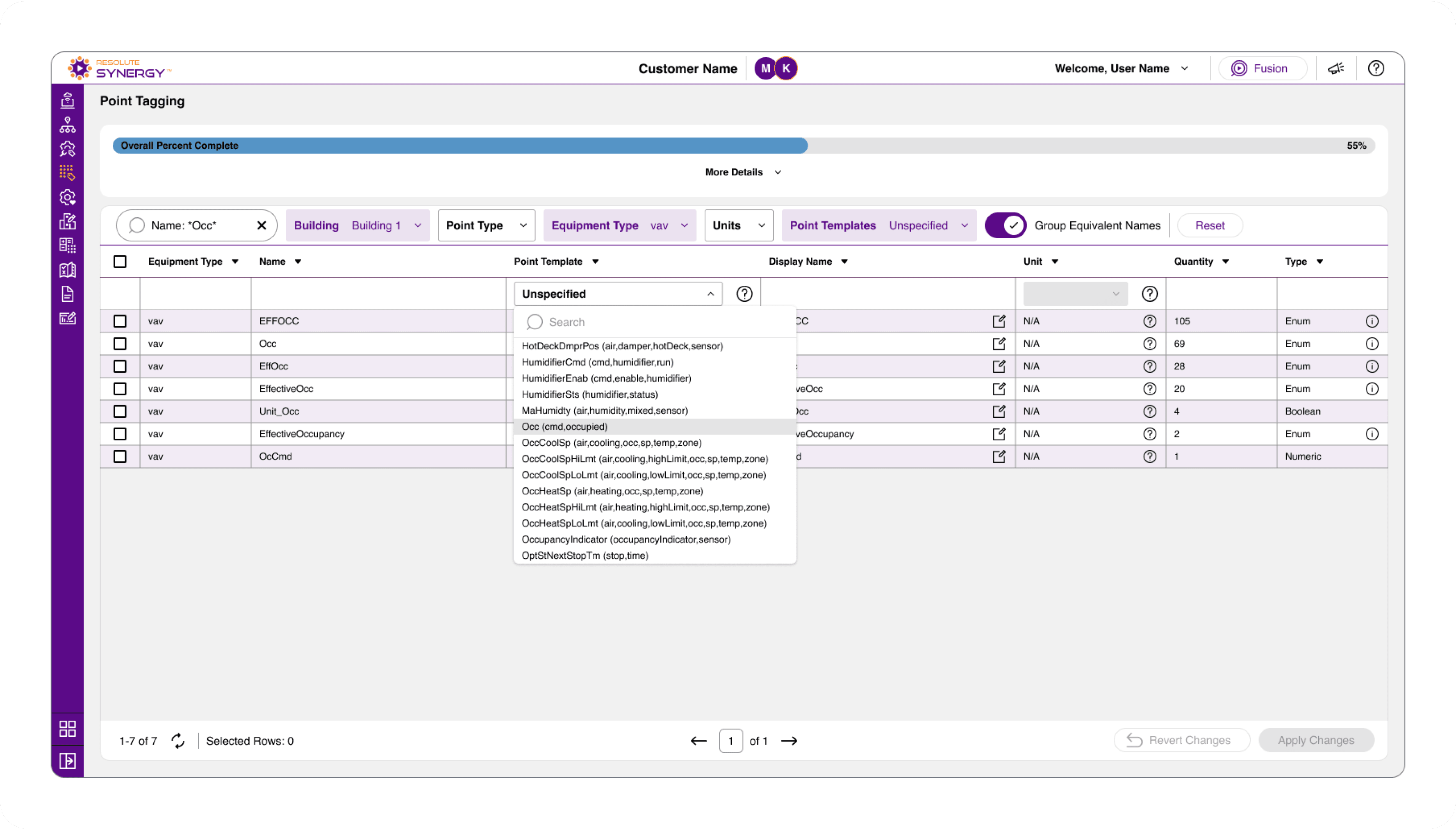Once a dataset is filtered and a template is selected, changes can be applied across all selected points at once.